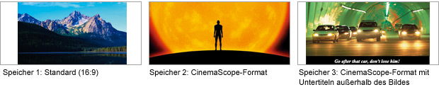 Beispiele für Lens Memory-Einstellungen (für eine CinemaScope-Leinwand)
