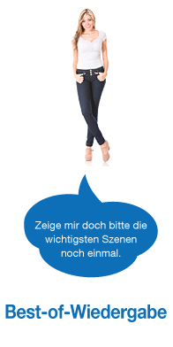 Schnell mal das Beste zeigen: Die Digest-Playback-Funktion pickt aus den gespeicherten Aufnahmen die interessantesten Szenen heraus und fasst diese wie in einem Werbetrailer für einen neuen Kinofilm als kurzen Videoclip zusammen. Welche Aufnahmen für die Best-of-Wiedergabe in Frage kommen, ergibt sich anhand der folgenden Suchkriterien: