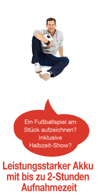 - Leistungsstarker Akku mit bis zu 2-Stunden Aufnahmezeit