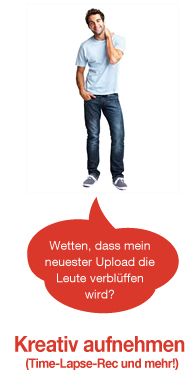 In diesem Modus kannst du 15 Sekunden lange Videoclips aufzeichnen, direkt an die eingetragenen E-Mailadressen verschicken und diese dann überall mit einem Smartphone oder Computer abrufen. Bis zu acht Empfänger können für den gleichzeitigen Versand deiner Videobotschaften an eine Gruppe vorgemerkt werden.