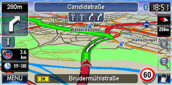 Wählen Sie zwischen der klassischen 2D-Ansicht, in der Norden immer oben ist, der 2D-Ansicht mit Ausrichtung in Fahrtrichtung oder der 3D-Ansicht mit Ausrichtung in Fahrtrichtung.